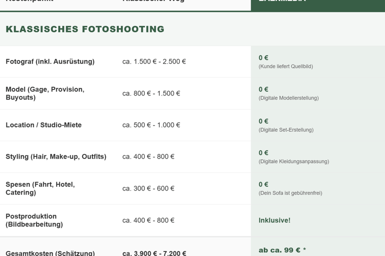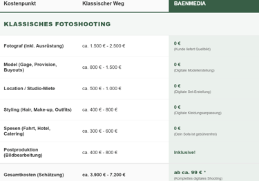 Beispielrechnung Fotoshooting